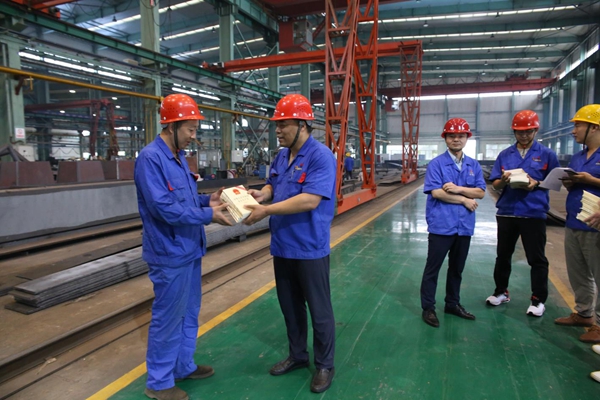 西安重裝陜西中環(huán)公司為一線職工發(fā)放新《安全生產(chǎn)法》資料。 侯永建 攝
